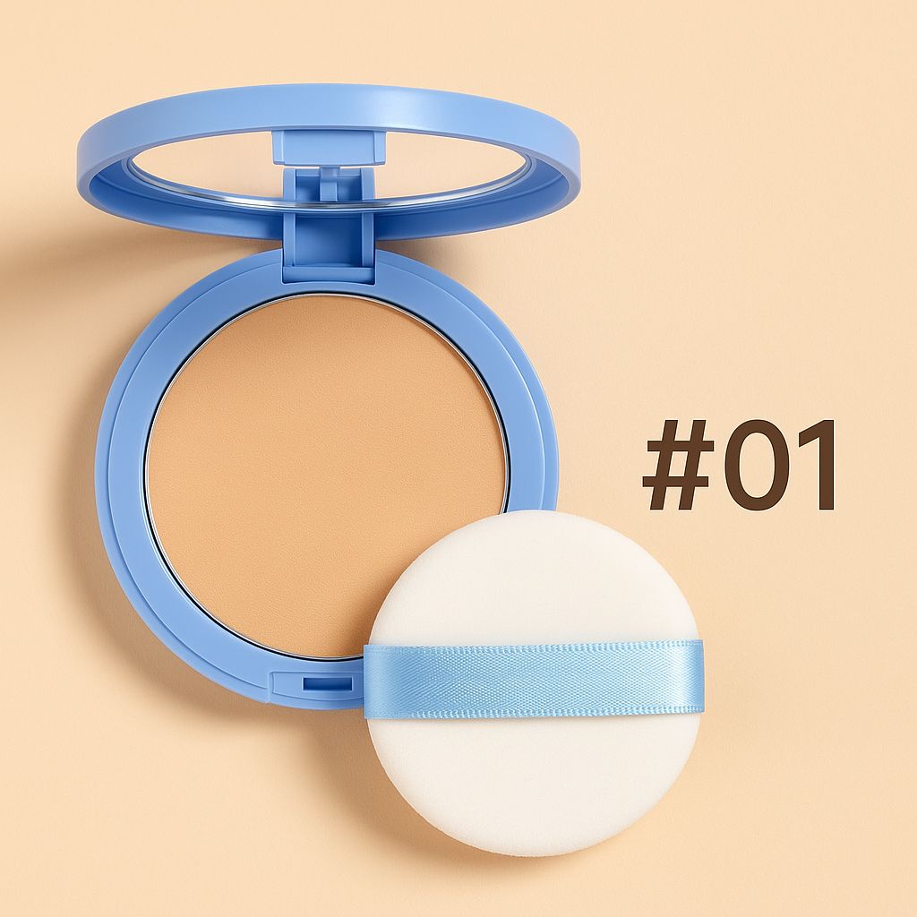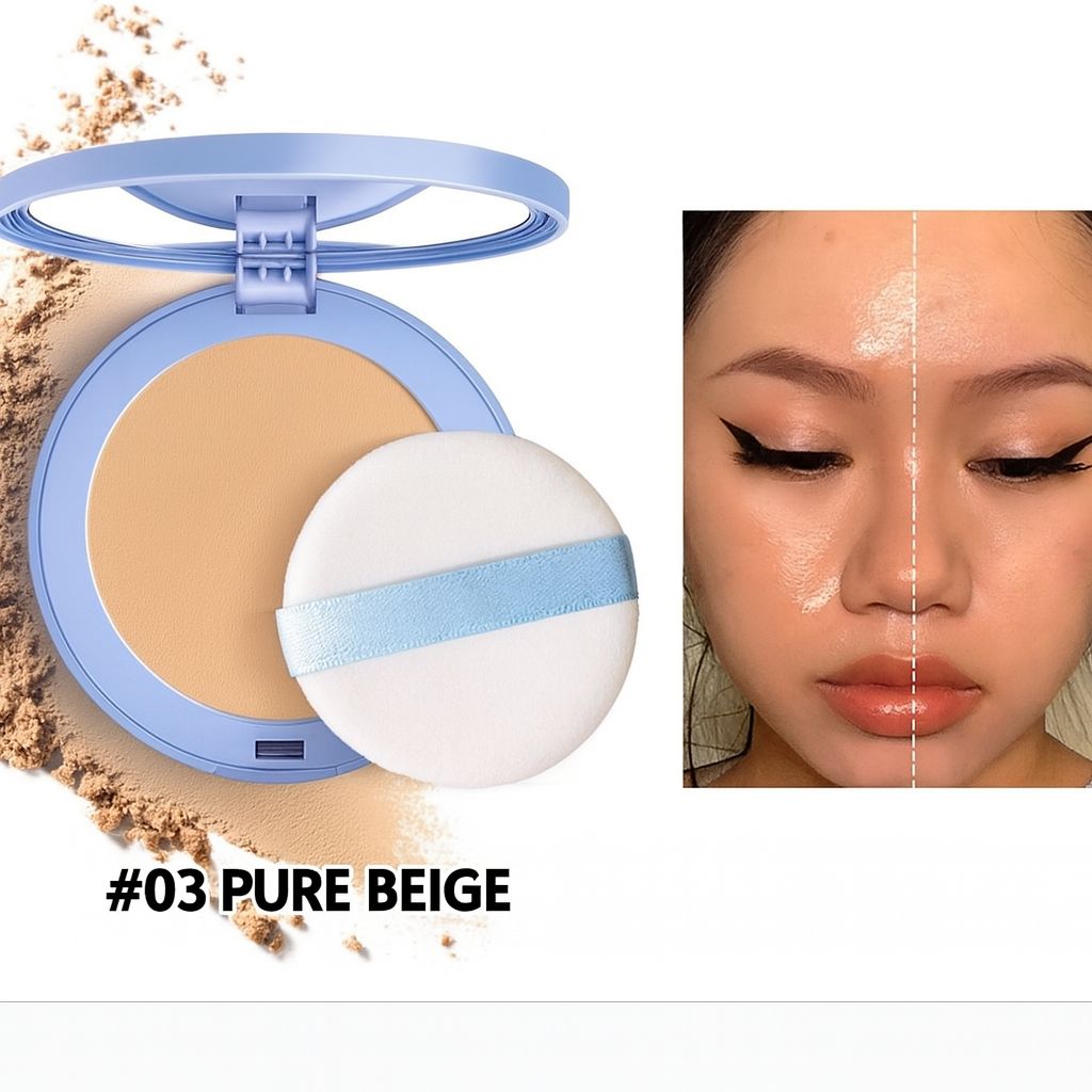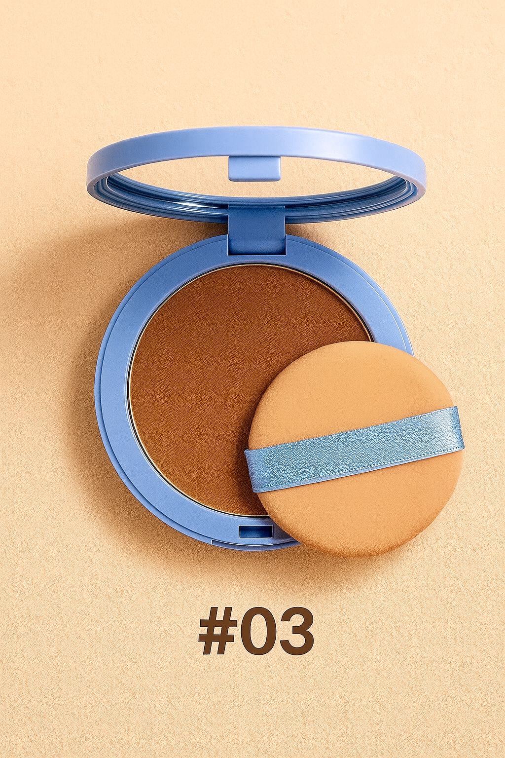 Aplica el polvo con toques suaves sobre el rostro para reducir el brillo y lograr una cobertura uniforme.